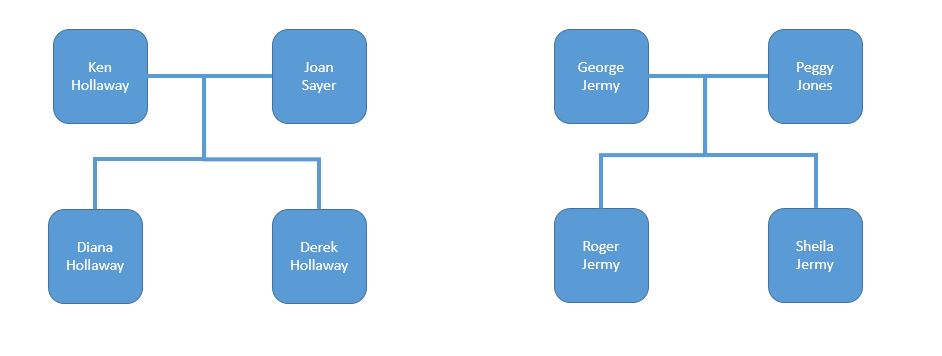 Grandparents Ken and Joan Hollaway, had two children, Diana and Derek.
