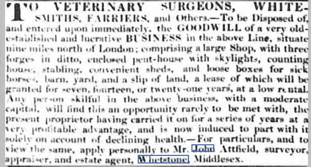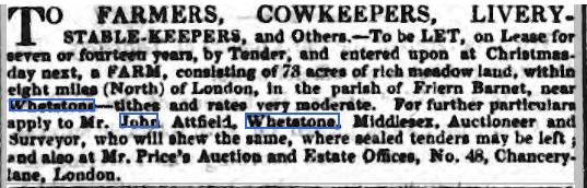 1861 Census: Whetstone (age 65). Occupation: surveyor.