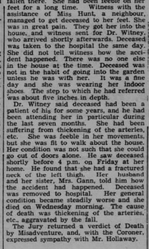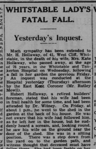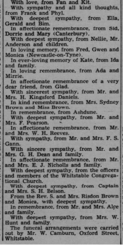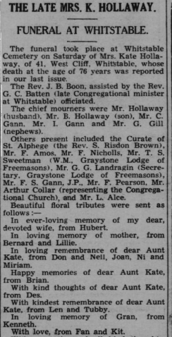 Died 3 June 1937 (still living at 41 West Cliff (Kingsfield).