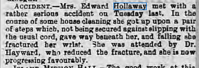 1851 Census: Harbour Street, Whitstable (age 58). Occupation: master boatbuilder. Living with: Elizabeth Holloway (81) (mother), Mary Holloway (57) (wife), Mary Ann Denham (28) (daughter, widowed), Eliza Holloway (22) (daughter), Sarah Ann Holloway (20) (daughter), Martha Ann Holloway (15) (daughter), Mary Ann Denham (4) (grand daughter).